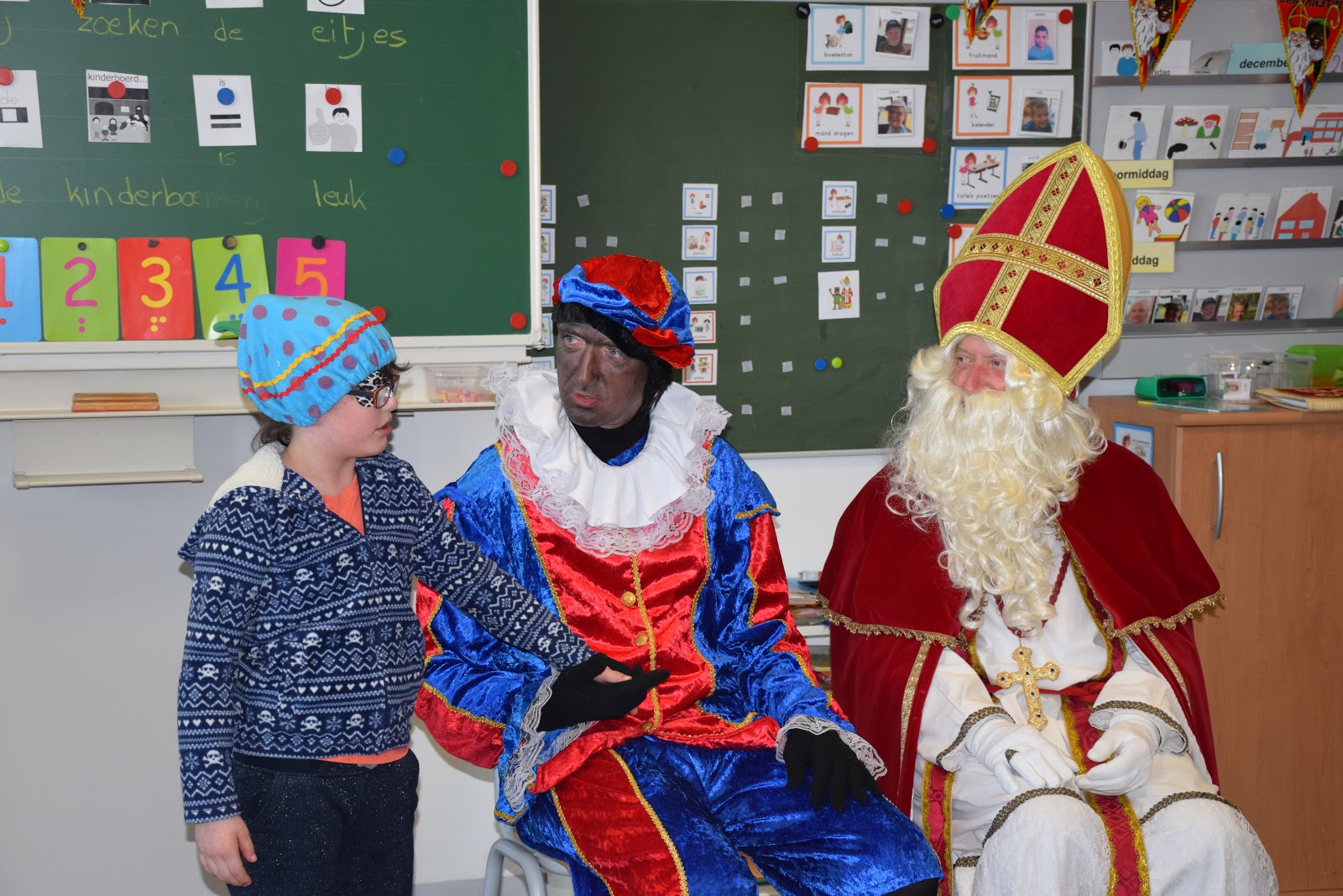 Onder onze kerstboom lagen pakjes. De leerlingen mochten elk om beurt een naam trekken en dan een pakje aan die leerlingen geven. Zo oefenden we nog eens het geven aan, elkaar aankijken bij het praten, alstublieft en dank u wel zeggen, ...